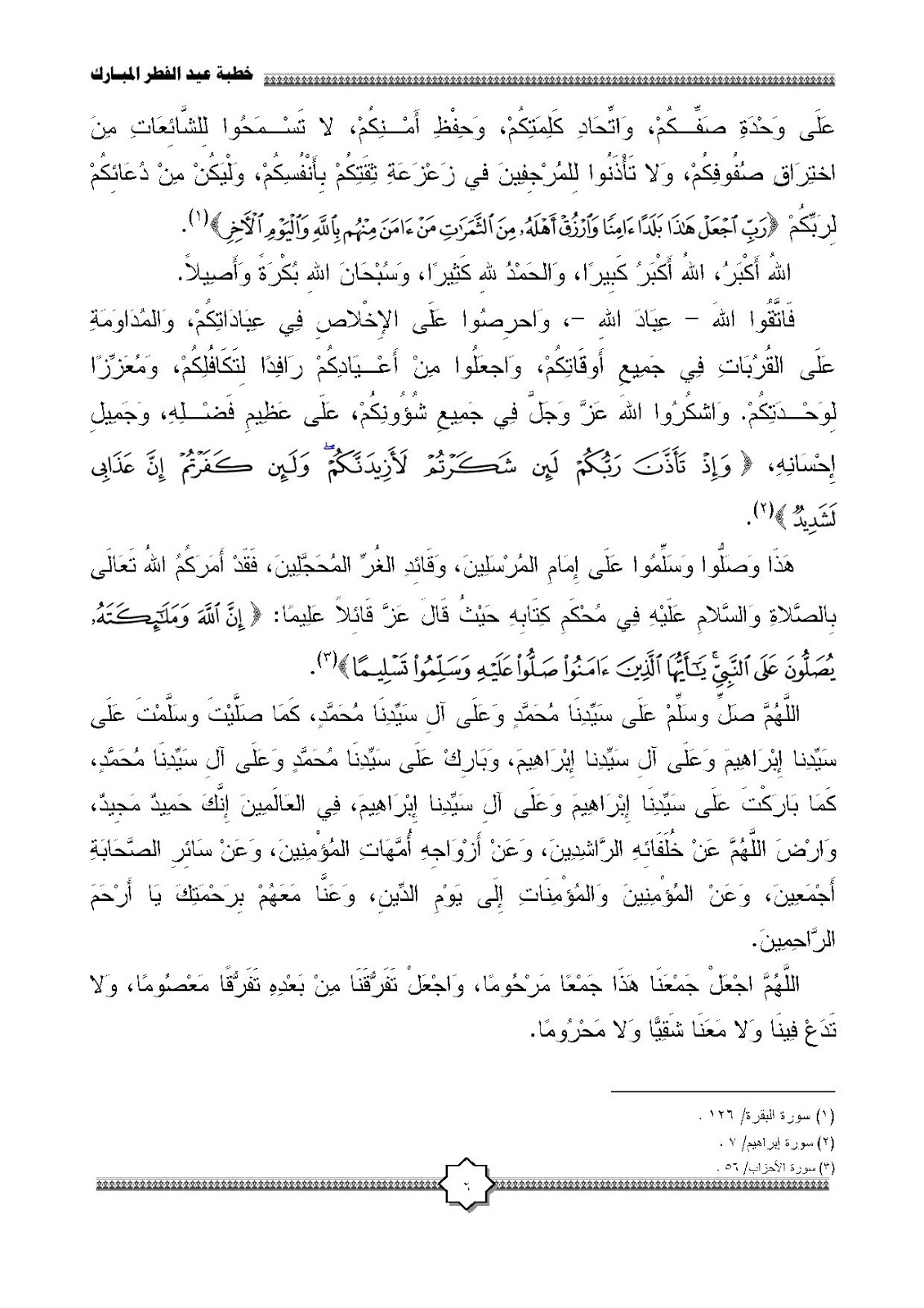 خ طـب ة ع يد الف ط ر الم ب ار ك سلطنة عمان مكتوبة 2017