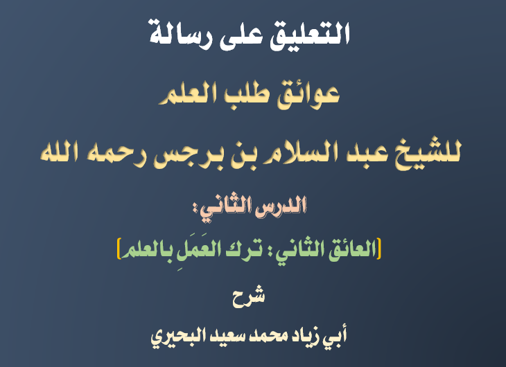 موقع أبي زياد محمد بن سعيد البحيري التعليق على رسالة عوائق طلب العلم للشيخ عبد السلام بن برجس رحمه الله الدرس الثاني ترك العمل بالعلم شرح أبي زياد محمد سعيد البحيري