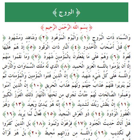 مقتطفات دينية سورة البروج كاملة مكتوبة