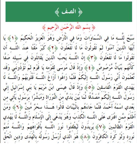 مقتطفات دينية سورة الصف كاملة مكتوبة