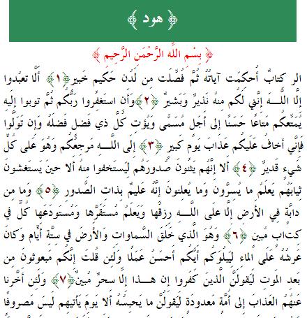 مقتطفات دينية سورة هود كاملة مكتوبة